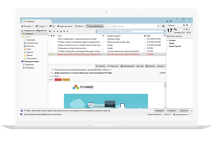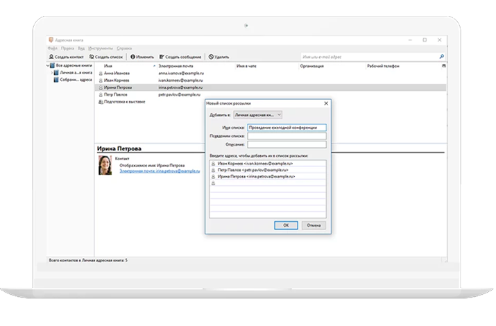 Ваши личные и рабочие контакты синхронизированны с почтой и календарем.