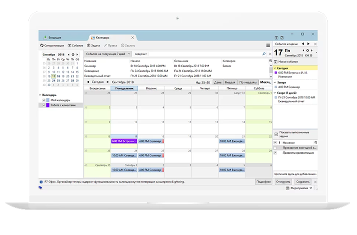Ваше расписание и список дел - на день, неделю или месяц - всегда под рукой.