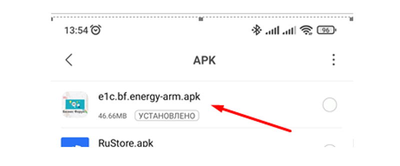 1. Скопируйте файл e1c.bf.energy-arm.apk на мобильное устройство под управлением Android2. Откройте проводник и найдите скопированный файл.